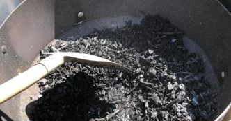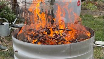 Dort sieht man nun regelmäßig ein wohlig warmes Feuer lodern, jedoch ist die stabile Tonne keine herkömmliche Feuertonne, sondern ein ausgeklügeltes System zur Herstellung von Pyrolysekohle, auch Terra Preta genannt, die wir einerseits zur Gartenverbesserung und Düngung verwenden, damit aber auch einen entscheidenden Klimabeitrag leisten.In den Behälter werden gleichmäßig große Holz- oder Grünabschnitte über einen längeren Zeitraum schichtweise verbrannt. Dieser Vorgang ist wichtig, damit alles gut durchbrennt. Die Pflanzenkohle wird bei ca. 400 – 1000 Grad verbrannt. Durch den Sauerstoffentzug und der Zugabe von Wasser bzw. gemischt mit Brennnesseljauche oder Hühnerkot, entsteht die aktivierte Pyrolysekohle.